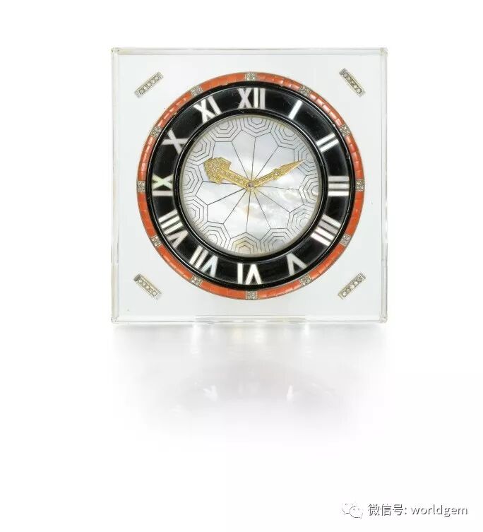 珊瑚、黑玛瑙、水晶原石、珍珠母贝及钻石时计